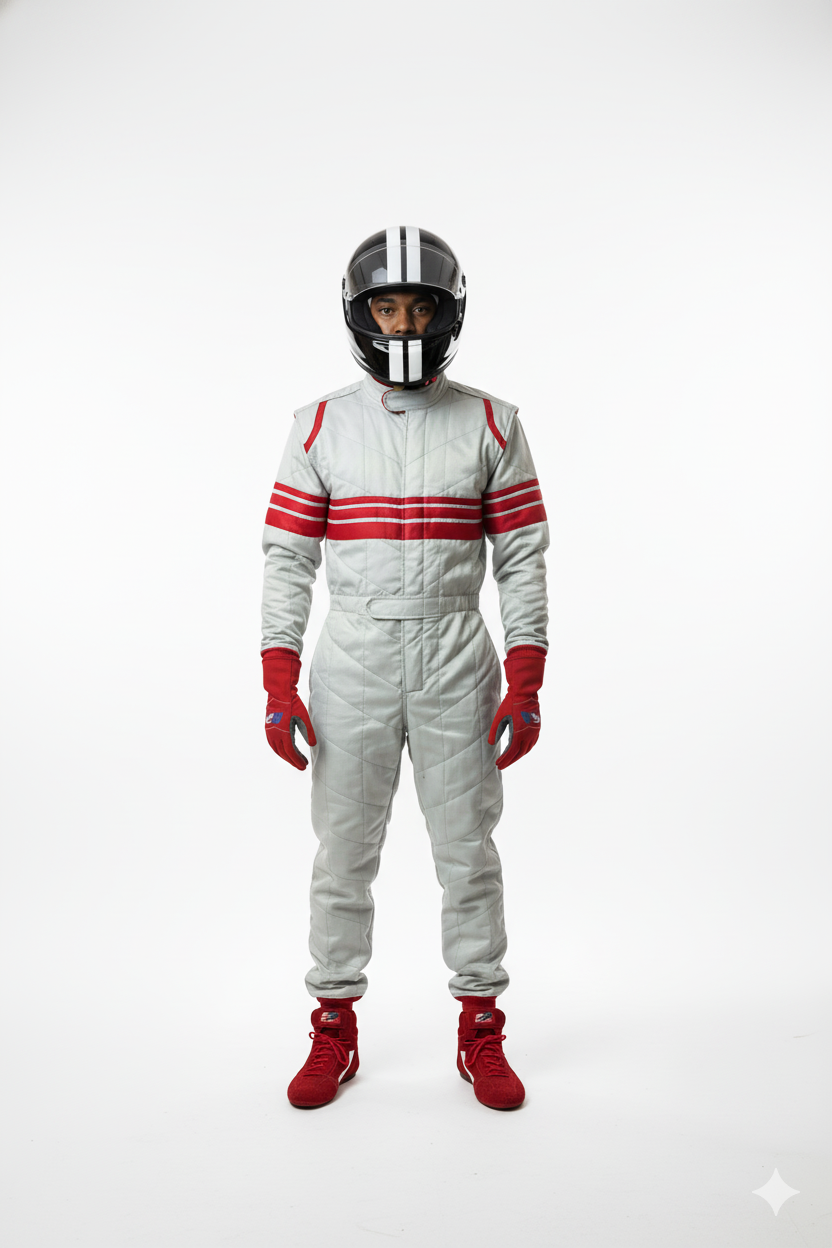 Macacão acolchoado modelo I confeccionado com tecido 56% algodão e 44% poliéster,  manta acrílica e a malha que contribui para retenção de calor e liquido expelido pelo corpo (Suor) durante a corrida. Os punhos, junto das mangas e os tornozelos são feitos em poliamida.